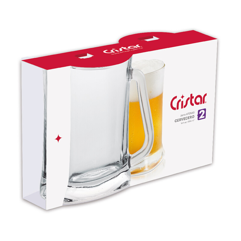 The Atenas Tankard by Cristar. A robust, classic beer mug featuring a clean, smooth design and a substantial handle for the ultimate drinking experience.