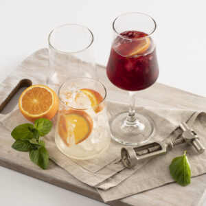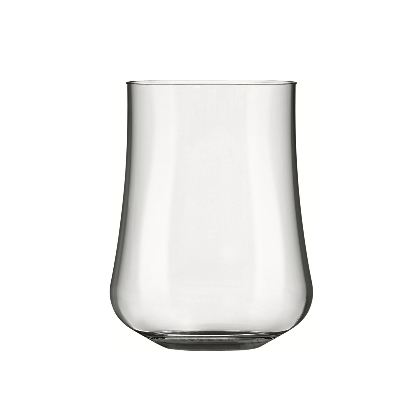 The Bolonia Beverage Tumbler by Cristar. A sleek, stemless glass featuring a sophisticated, angular base that mirrors the elegant aesthetic of the Bolonia wine collection.