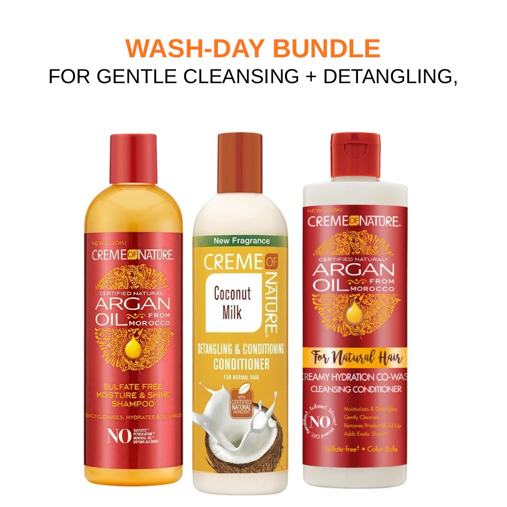 Gentle cleansing, smooth detangling, and deep hydration all in one wash-day routine. This bundle features a sulfate-free shampoo, a creamy detangling conditioner, and a co-wash — all infused with natural oils to nourish your strands without stripping them.